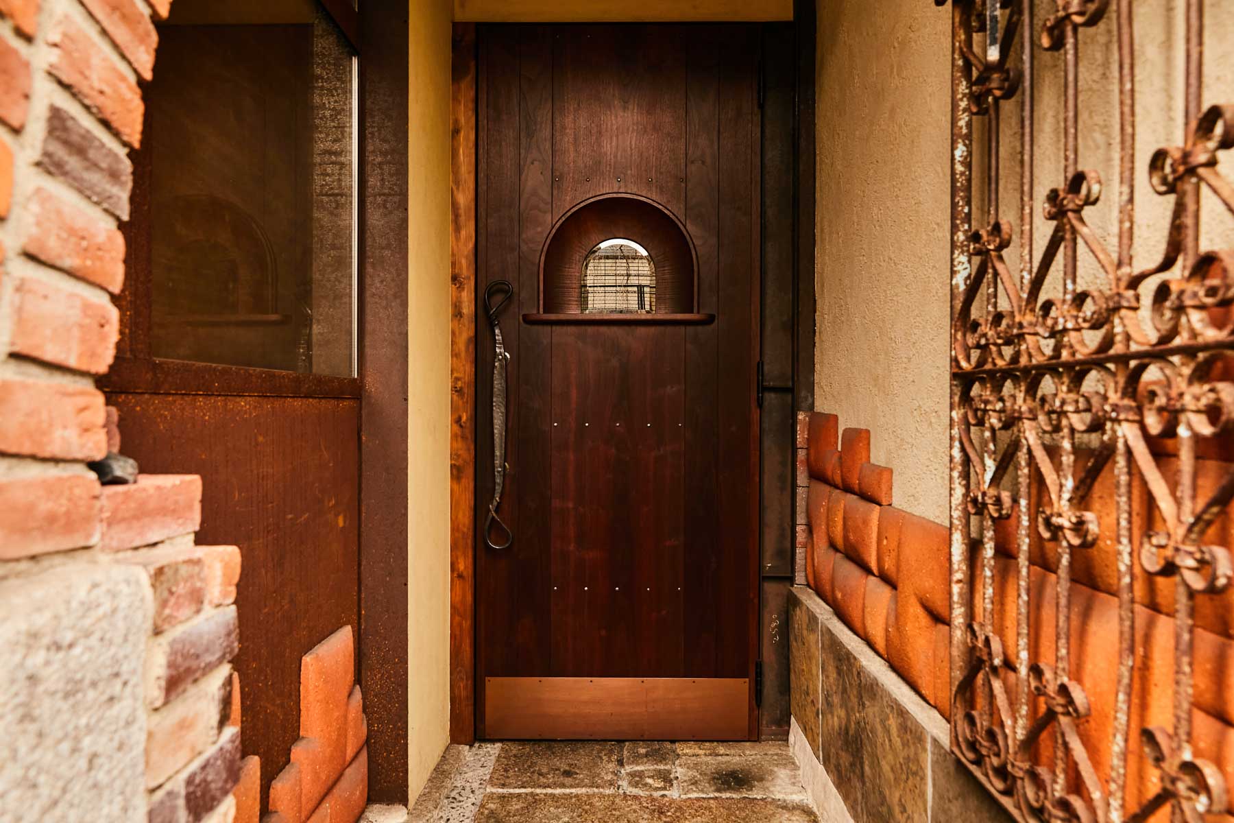 Creating a space for quietude and relaxation was the motivation behind this location in the beautiful cherry blossom-lined streets of Okazaki near Heian Jingu Shrine and the Rohm Theatre Kyoto, away from the bustling central areas of Kyoto. With a mezzanine floor, the interior has plenty of space for tables and a private room. The restaurant attracted attention immediately with its interior design featuring brick walls, a high ceiling, and sturdy columns reminiscent of a Scandinavian building.
